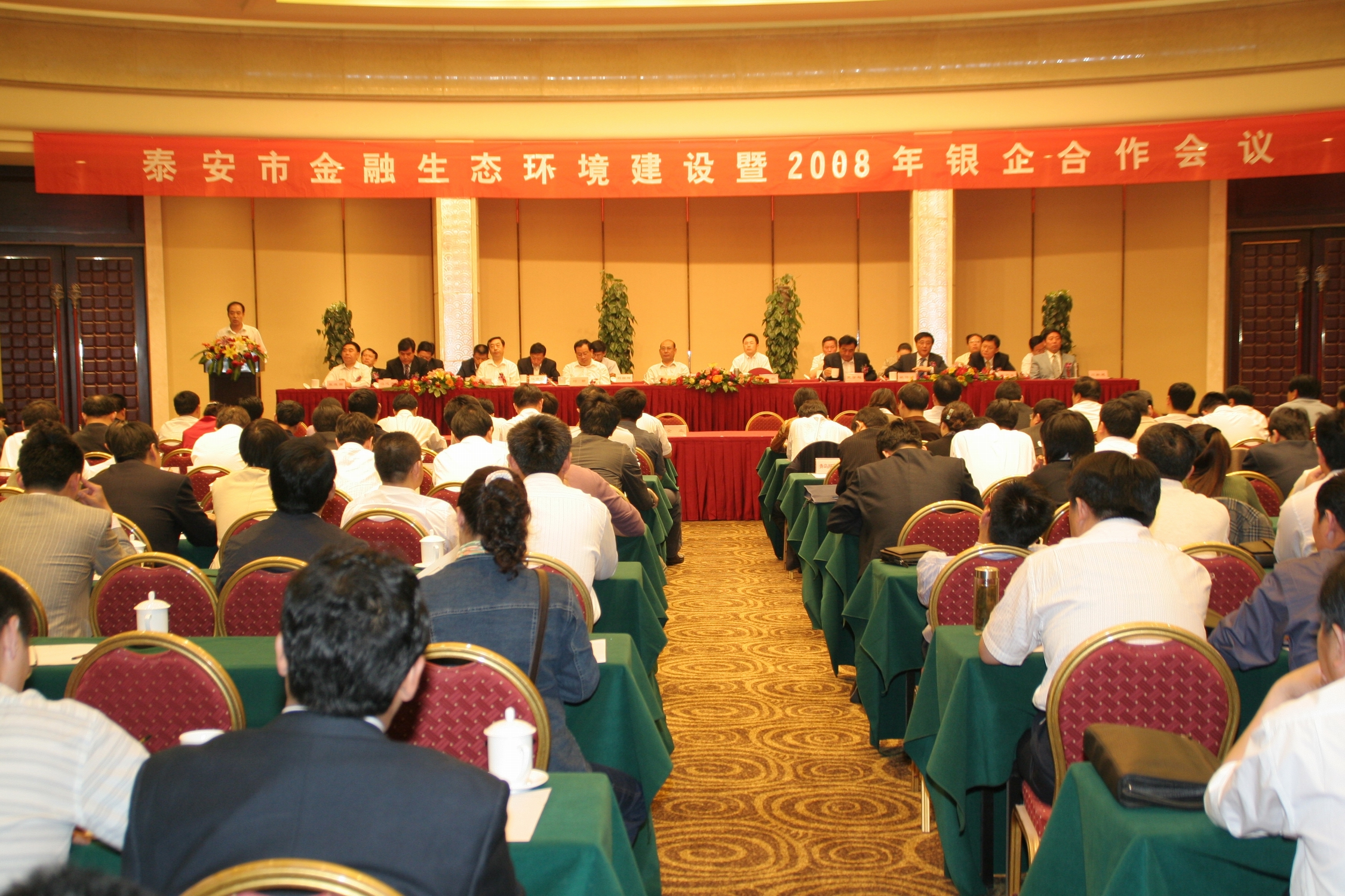 2008年5月9日,全市金融生态环境建设暨2008年银企合作会议召开,市长李洪峰、副市长闫新建出席会议。会议邀请了中国人民银行济南分行、国家开发银行山东省分行、青岛进出口银行、农发行山东省分行、中国工商银行山东省分行、中国农业银行山东省分行、中国银行山东省分行、中国建设银行山东省分行、交通银行济南分行、省农信社、华夏银行济南分行、中信银行济南分行、中国民生银行济南分行、中国光大银行济南分行、招商银行济南分行、深圳发展银行济南分行、兴业银行济南分行、上海浦东发展银行济南分行、恒丰银行济南分行、青岛华夏银行、浦发银行青岛分行、招商银行青岛分行、深圳发展银行青岛分行、中信银行青岛分行等20余家金融机构。