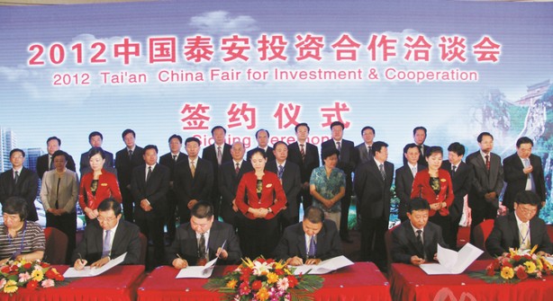 说起外经贸发展的有力助推,每年国际登山节期间召开的“中国泰山国际投资贸易洽谈会”功不可没。2011年登山节期间,到会外商共152家212人。客商分别来自香港、澳门、台湾、美国、英国、德国、法国、西班牙等20个国家和地区。美国卡特彼勒、美国星巴克、法国欧尚、日本永旺株式会社等世界500强企业及知名企业出席。洽谈会期间举办了资本合作对接会,有22家世界和国内知名的创投公司代表与泰安市26家企业进行了洽谈。签约20个外资项目,利用外资4.46亿美元。