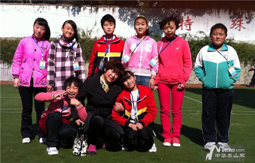 和西梅和盲童志愿者服务队成员在一起