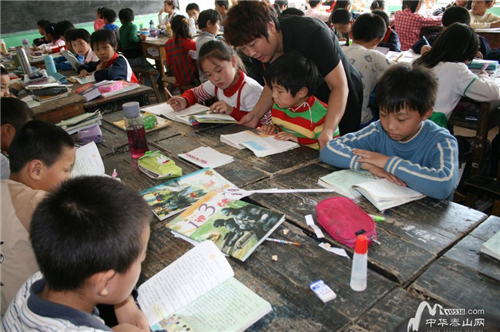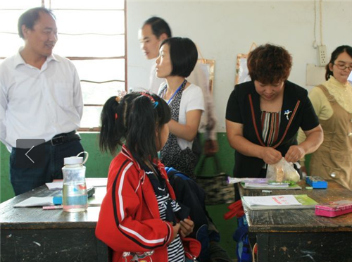 和西梅在检查特困孩子的个人卫生,教育孩子如何长期保持自我卫生