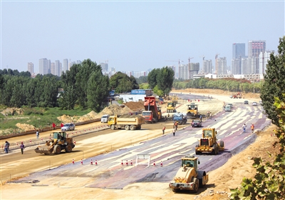 目前,泮河大街道路改造工程第三标段开始进入沥青铺设阶段,预计10月底泮河大街全路段主车道完成沥青铺设,具备通车条件。