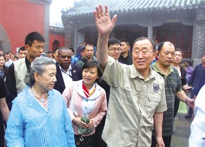 联合国秘书长潘基文参观访问泰山