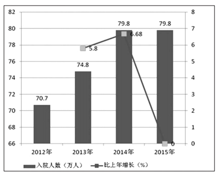 2015年,全市医疗卫生机构入院人数79.84万人,比2014年增加0.08万人,增长0.1%。