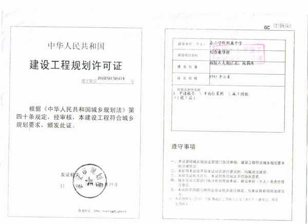 学院附中综合楼建设规划许可证
