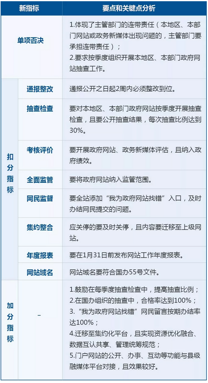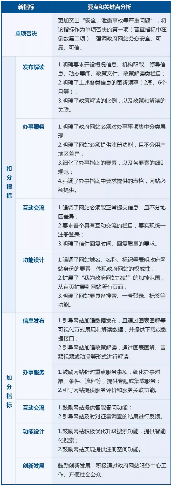2019年4月,国务院办公厅秘书局印发《国务院办公厅秘书局关于印发政府网站与政务新媒体检查指标、监管工作年度考核指标的通知》(以下简称“新指标”),成为未来引导全国政府网站健康有序发展的“风向标”和“指挥棒”。