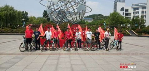 志愿者们共分为两队,六点三十在学校门口集合完毕。一队人员骑车向泰安火车站骑行,在火车站下车改做公交向活动终点天外村出发;另一队人员,乘坐公交到达火车站,等待一队人员到来进行对接,从火车站骑行到达天外村。