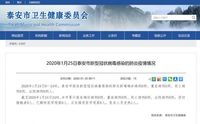25日泰安市新型冠状病毒感染的肺炎疫情情况