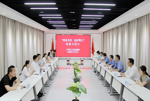 5月29日下午,宁阳县人民检察院开展以“同舟共济·检护明天”为主题的“检察开放日”活动。活动邀请了团县委、妇联、教体局、卫健局、疾控中心等职能部门代表及复圣中学教师、家长代表。院党组副书记、副检察长王永建,党组成员赵贞斌及第二检察部干警参加了活动。