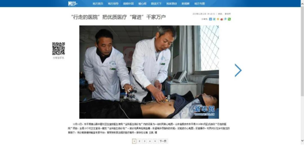 2019年9月20日凌晨3点,东平县斑鸠店镇荫柳棵村有患者突发急性心肌梗死,当地卫生室医生张家玉立即使用“行走的医院”诊疗包为患者进行了十二导联心电图检查,现场验证判断无误后,通过远程数据会诊系统使患者接受东平县人民医院胸痛中心治疗,经过精心救治,患者转危为安。