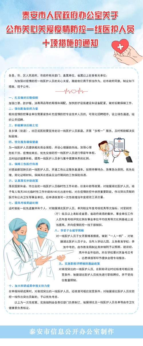 【图解】泰安市人民政府办公室关于公布关心关爱疫情防控一线医护人员十项措施的通知