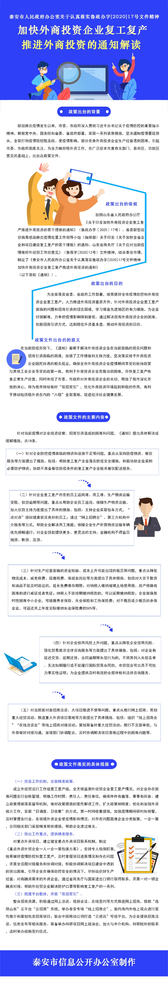 【图解】《泰安市人民政府办公室关于认真落实鲁政办字[2020]17号文件精神加快外商投资企业复工复产推进外商投资的通知》解读