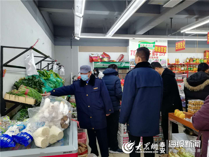 粥店街道辖区有司家庄市场、粥店市场等六处农贸市场,新时代超市、亿家坐标两处大型商超,是人员比较集中的交易场所,为此市局、区局都派出执法人员和粥店所的公益岗、劳服人员以及社区工作人员共同对市场进行全天候监管。指导市场主办单位做好疫情防控措施,张贴疫情防控材料,每天早晚对市场进行消毒,在入口处张贴“未戴口罩禁止入内”和“泰安通”二维码标志。指导开办单位对入场者测体温、扫“泰安通”二维码、登记信息、维持秩序,每天对进入市场的经营户检查购货单据、检疫票据、活禽宰杀情况,做到了市场不停、监管不止。