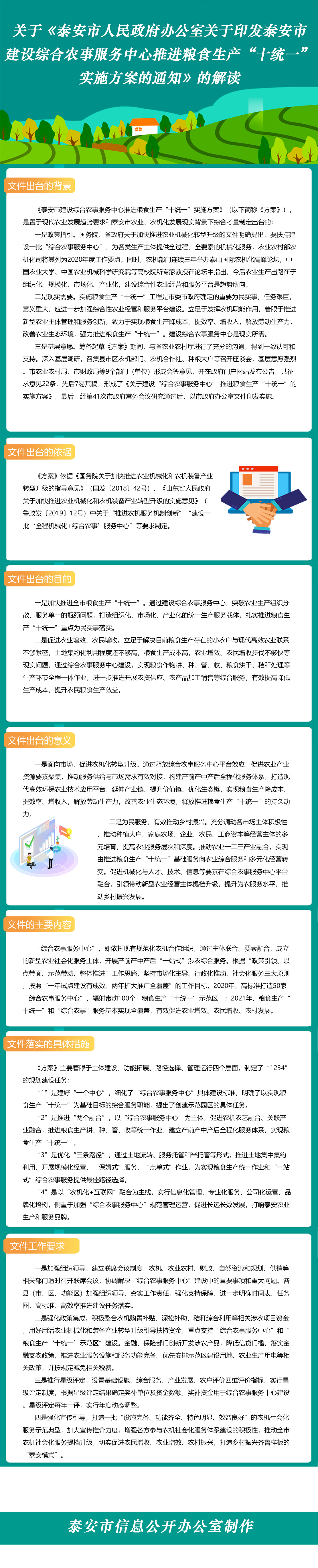 【图解】关于《泰安市人民政府办公室关于印发泰安市建设综合农事服务中心推进粮食生产“十统一”实施方案的通知》的解读
