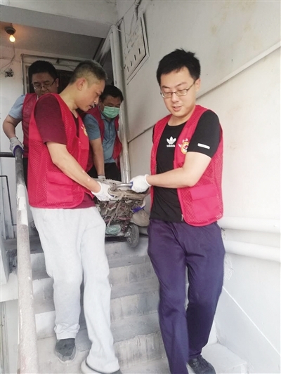 当天,志愿者分工明确,手持扫帚、簸箕等清理工具,对多个小区的楼道卫生进行地毯式清理。在3个小时的志愿服务活动中,志愿者挥汗如雨,将4个居民小区、8栋住宅楼楼道里堆放的废旧水槽、石板、乱石等建筑垃圾以及陈年杂物清除干净,受到居民的好评。