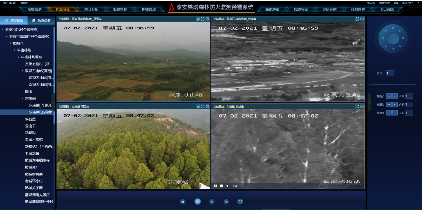 泰安市林业局和铁塔公司充分发挥技防优势,在全市国有林场“天眼护山”森林防火监测预警系统采用了当今最成熟、可靠的“热成像自动报警+烟雾自动识别”技术,并将监控范围扩大到了全市范围内所有重点山区林场,监测覆盖率达到了85%以上。