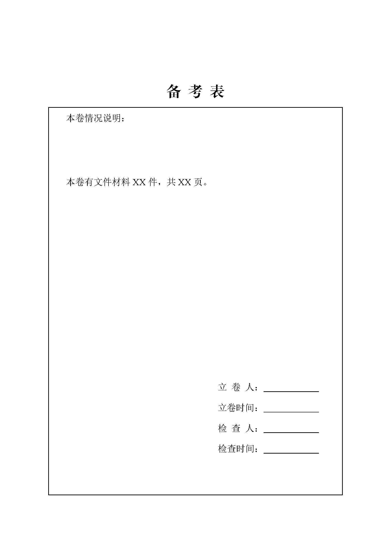 3.检查人:填写案卷质量审核者的姓名,如果是部门立卷,检查人为档案室人员,如果是档案室立卷,检查人也是立卷人,要求照实填写。
