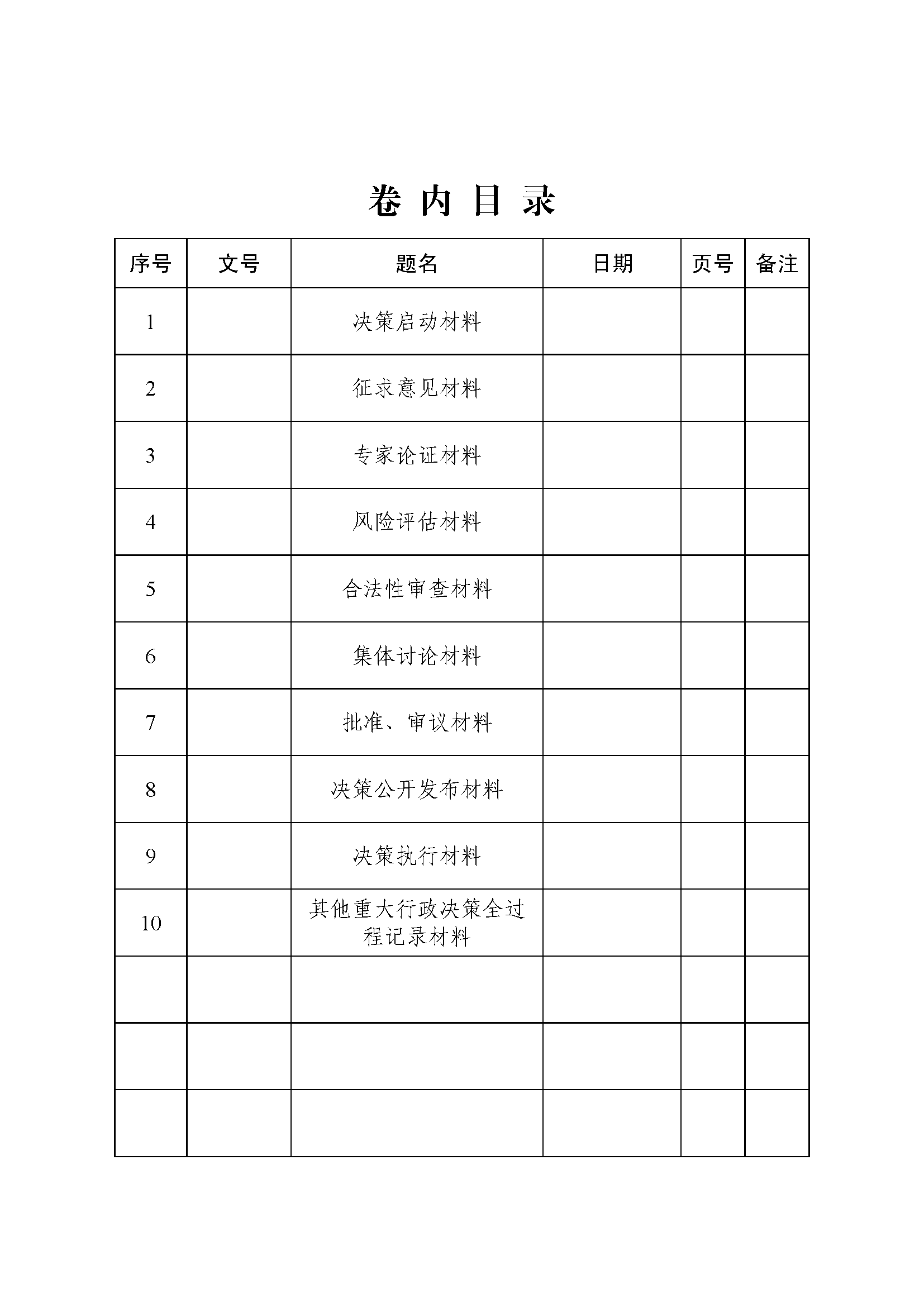 6.序号、题名、文号、日期、备注由业务部门填写,页号由档案部门填写,档案部门可补充填写归档后的备注信息。