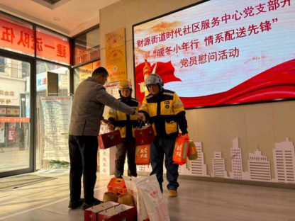 关爱新就业群体,传递新春暖意。依托暖“新”驿站、党群服务中心等阵地,整合爱心商户资源,为外卖小哥、快递员等新就业群体送上热粥、暖手宝等物资,提供临时休憩、手机充电等补给服务。开展“暖冬小年行·情系配送先锋”等党员走访慰问活动,将温暖与祝福送到“城市摆渡人”心坎上,让户外劳动者在寒冬里感受到社区关怀与城市温情。
