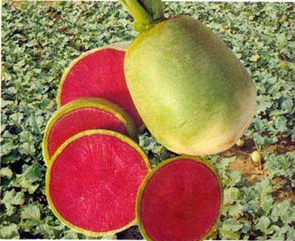 本品有扁圆形、椭圆形两种。皮均为青绿色,心红质脆,味甘美,水分足,糖分高。据分析,每百克鲜萝卜含维生素C28.92毫克、还原糖4.67克。有的甜中微辣,更是别具风味。主食、炒食、糖醋拌食无不适宜。药用能宽中和胃、助消化、止泻利尿、止咳化痰。近年来,中医用本品榨汁加元明粉适量,对预防肠癌、肺癌有一定效果。