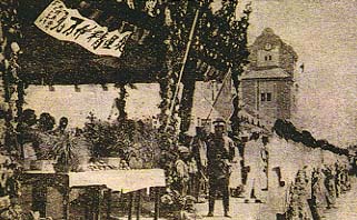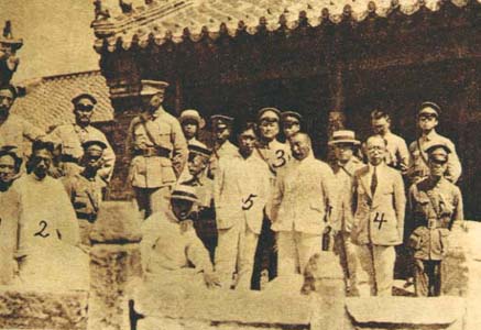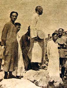 ![]() | 作为省会,民国史上重要的活动--孙中山安葬南京迎榇奉安,也开展得异常庄严隆重。 我们看到的,是当时迎榇活动在泰安的情形。当时大汶口是小站,泰安站是大站,故在泰安停留18小时45分钟。扎有祭祀牌楼的那张照片,就是泰安站。"总理精神不死"的横标,使整个公祭场面肃穆而激昂。 总理奉安纪念碑 国民党执行委员会主席、国民革命军总司令蒋介石在"五.三"事件前后,多次穿梭于济南与泰山之间。1929年5月7日,蒋公的登山活动被形象地记录了下来。 蒋介石及随员岱顶合影。1、浙江教育厅长陈布雷2、中央训政处长周佛海3、副官长陈铭阁4、泰安县长姚光裕5山东教育厅长何思源(1929.7) |
