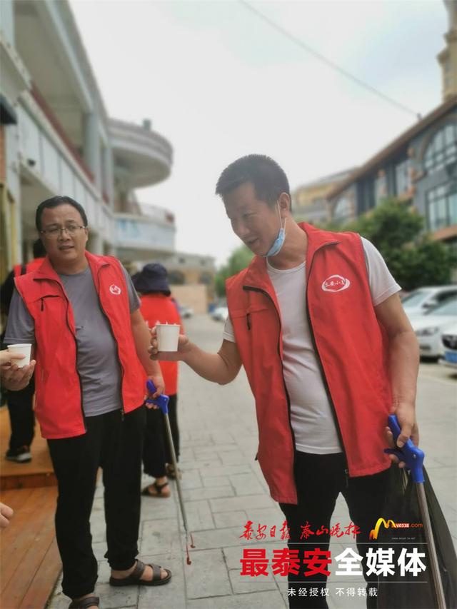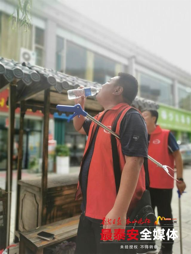“天太热了,你们来店门口喝水,歇一会儿吧。”一饮品店工作人员招呼志愿者来店门前喝水休息。“这一年来,有了‘泰安小美’志愿者们的辛苦付出,我们广场也有了很大的改观,真的是很感谢他们的付出。”工作人员说。