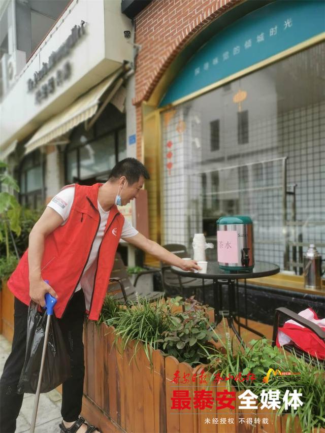 8月11日上午,天气炎热,“泰安小美”志愿者们像往常一样走上街头、小巷,维护交通秩序,清理垃圾。在泰安宝龙广场里,也不乏“泰安小美”的身影,他们弯腰捡拾垃圾,维持行人过马路秩序,让广场整洁又整齐,而这一切都被广场里的商户看在眼里,记在心里。据了解,泰安宝龙广场十余家商户自发设饮水点,从而让志愿者们能歇歇脚,喝水解暑。