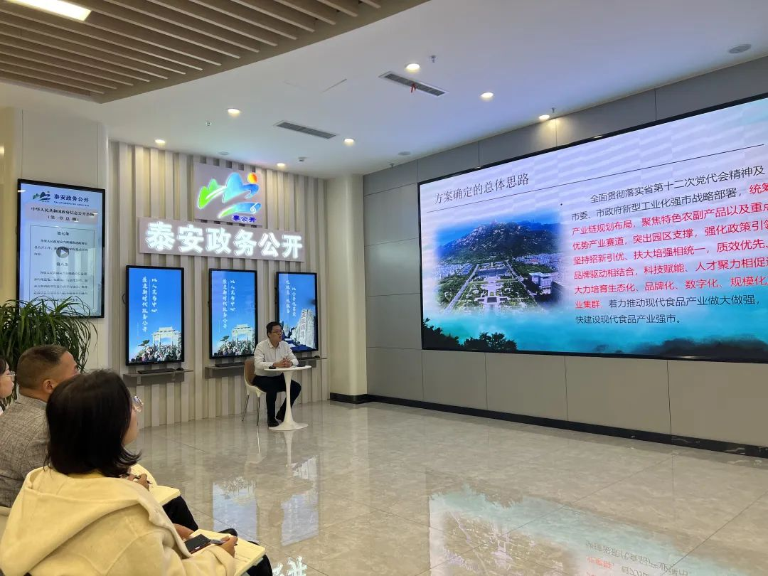 为加快推动我市现代食品产业高质量发展,助力新型工业化强市建设,11月13日,市农业农村局在“泰公开”市级政务公开专区组织开展了“强化政策引领 推动现代食品产业高质量发展”现场政策解读活动。现场邀请20余名企业代表参加活动。