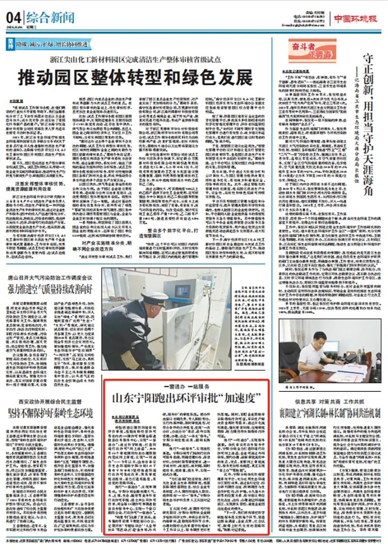 “为打通部门信息壁垒,我们关注企业全生命周期审批,提前获取项目前期信息,结合企业专员制度,介入项目环境准入阶段,提供精准‘一对一’服务。”宁阳分局生态保护科负责人王庆国对记者说。